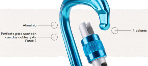 Un mosquetón HMS para dos cuerdas